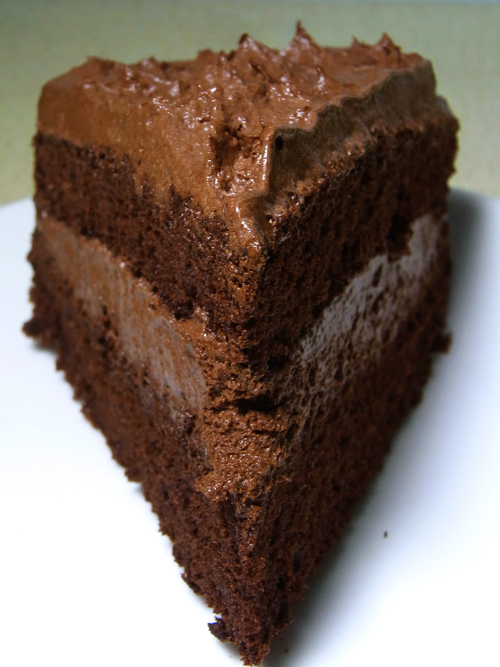 巧克力海綿蛋糕用加酒的糖漿浸過+加酒的甘納許